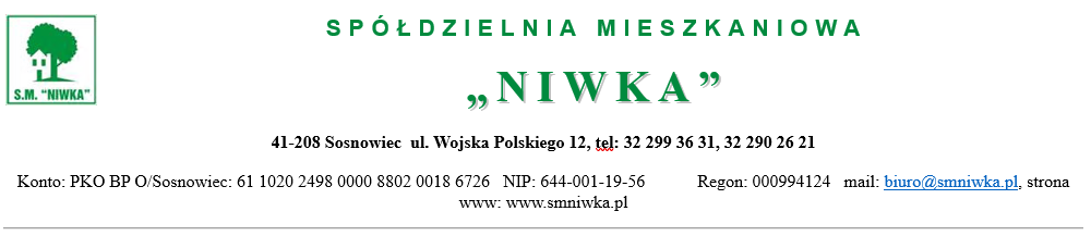 Zarząd Spółdzielni Mieszkaniowej „Niwka” informuje wszystkich Członków spółdzielni, którzy samowolnie zajęli i w sposób bezumowny korzystają z dodatkowych pomieszczeń piwnicznych o konieczności uregulowania powyższej sprawy poprzez zawarcie stosownych umów najmu.
